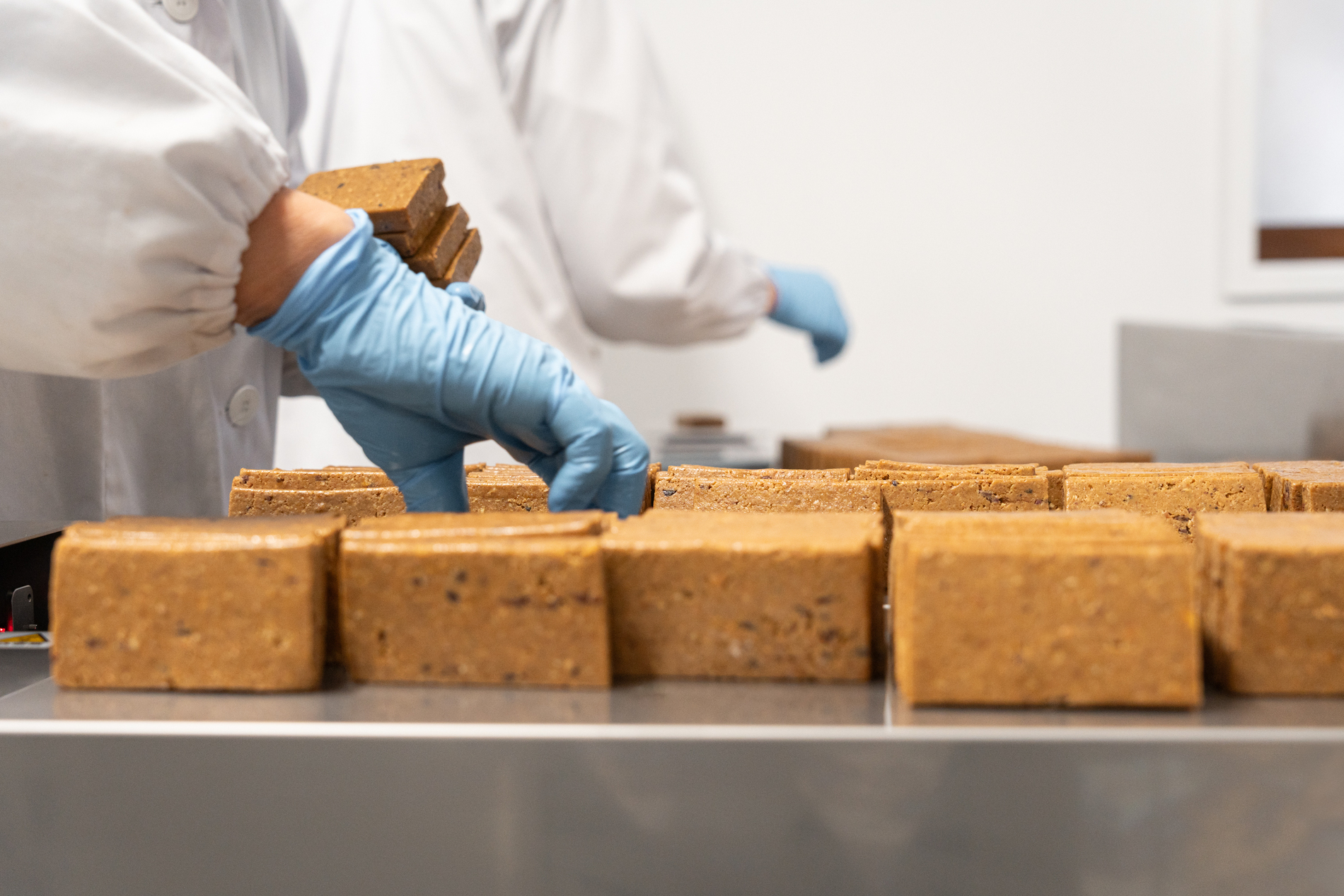 エナジーバーは加熱工程がないため、新しい工房でも衛生管理を徹底し、人の手で触れる時間を最小限にしている。