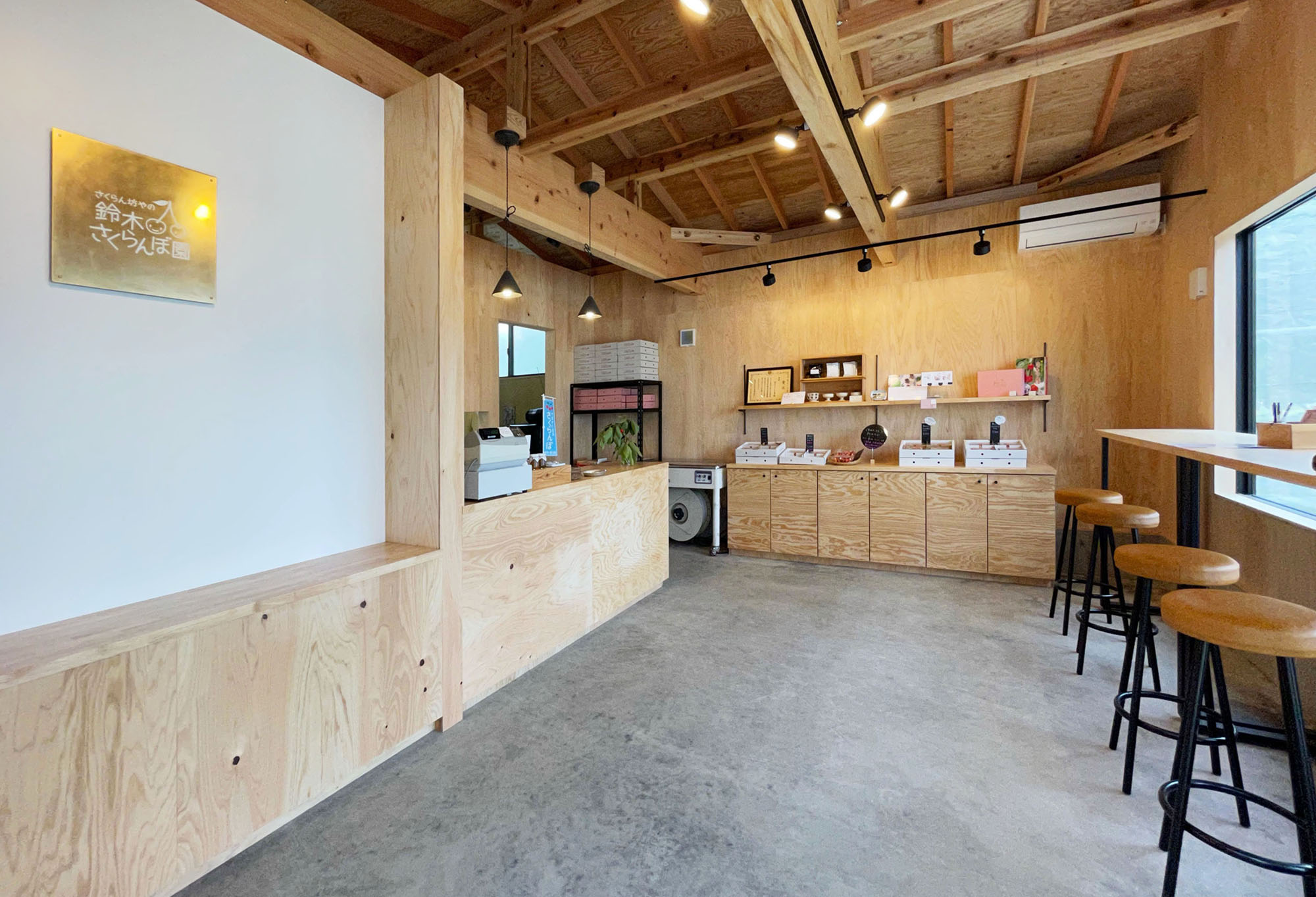 観光農園のショップ。温かみのある店内はカフェのよう。