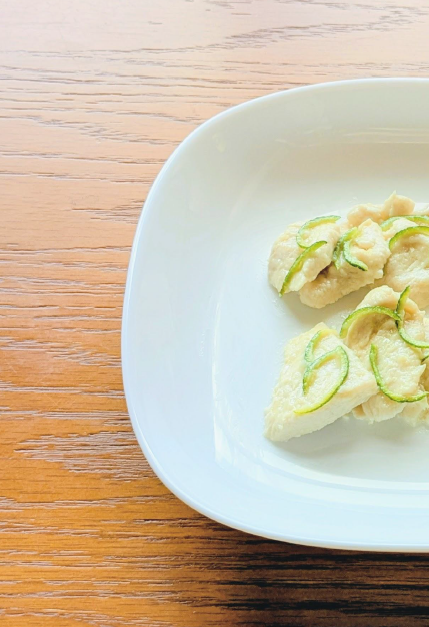 ③:耐熱容器に、①のすだちの皮と果汁・②の鶏むね肉・調味料の材料を全て入れて、揉みこむ。