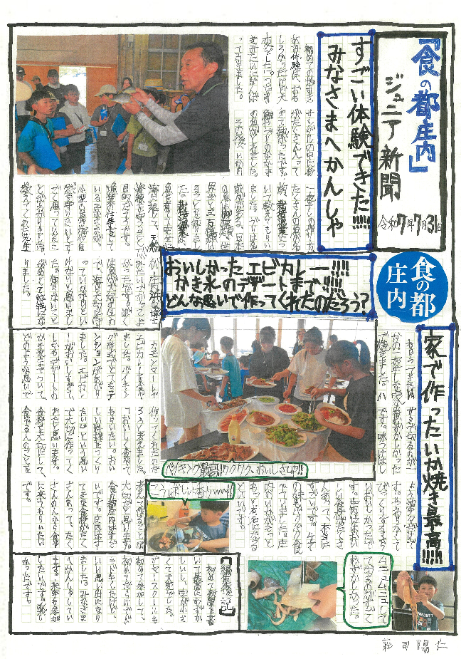 <「食の都庄内」サマースクール 新聞賞> 荘司 陽仁 さん(小学5年生)